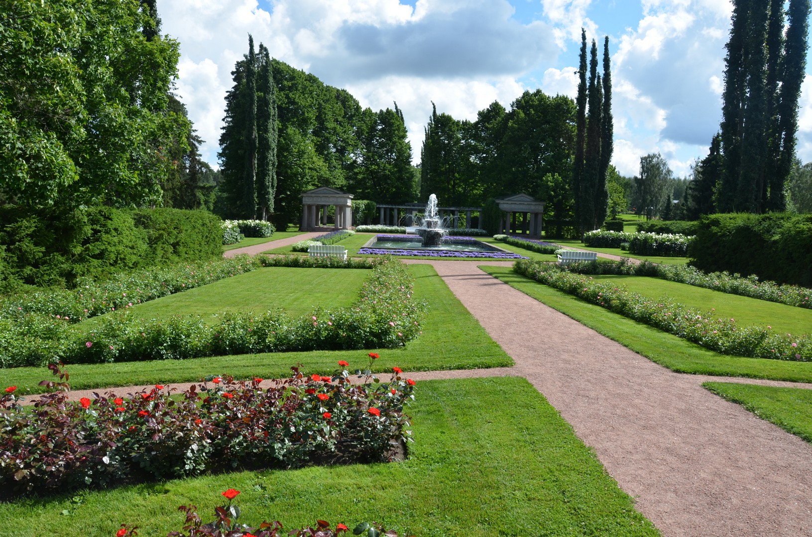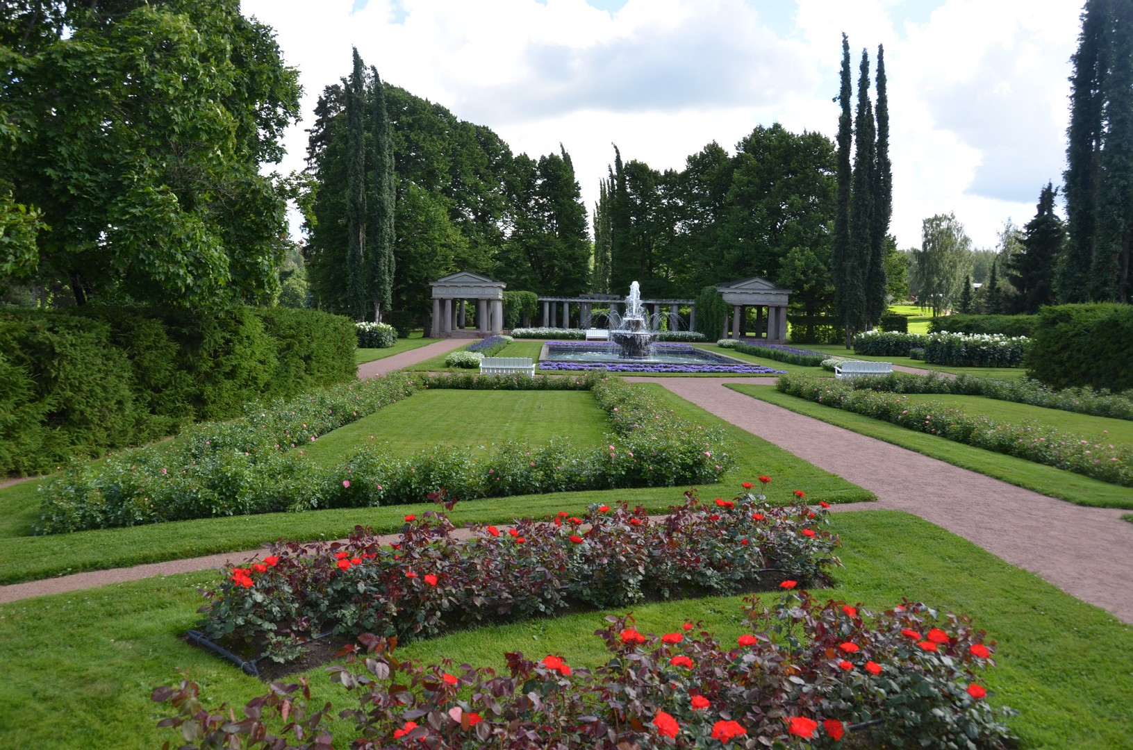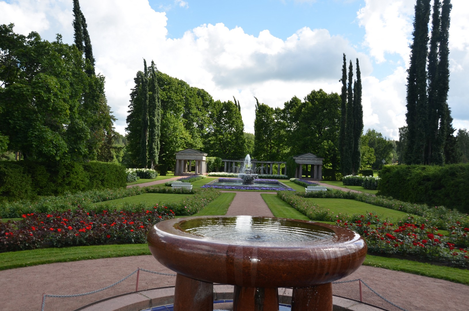Die älteste und bekannteste Sehenswürdigkeit in Naantali heißt Kultaranta. Kultaranta wurde in den Jahren 1914 - 16 von einem wohlhabenden, finnischen Geschäftsmann gebaut. Das Gebäude mit 19 Räumen in einem riesigen 560.000 qm Park wurde aus Granit gebaut und hat zweifelsohne eine imposante Architektur. Seit 1922 ist Kultaranta die Sommerresidenz der finnischen Staatspräsidenten. Im Sommer werden hier auch bedeutende ausländische Staatsgäste empfangen. Der Rosengarten mit über 3500 Blumen sowie die zahlreichen Gewächshäuser sind an bestimmten Wochentagen für Besucher zugänglich. Von so einem Besuch stammen meine Fotos.